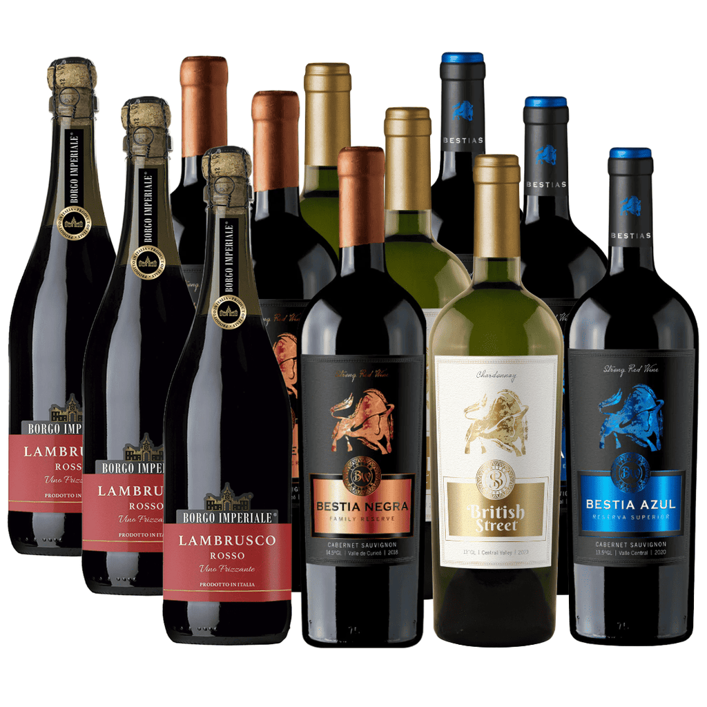 Pack 12 vinos| Lambrusco Rosso, Bestia y British| 750cc